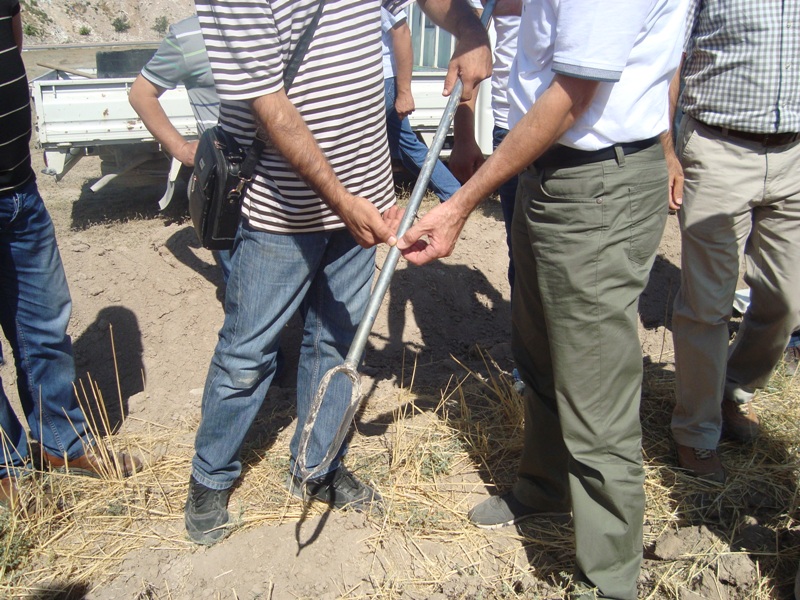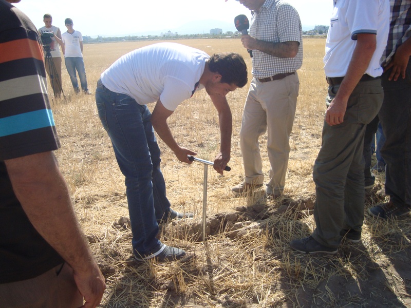Çumra Üyelerimizden Ahmet NURKOYUNCU'nun arazisinde Çizel ve Dipkazan uygulaması yapıldı. Uygulamaya Dernek Başkanımız M.Erol SÖZEN , Dernek Danışma Kurulu Üyesi Ziraat Fakültesi Hocalarımız, Dernek Üyelerimiz ve Dernek Personelimiz katıdılar. Tarlaya Sokulan her türlü toprak işleme aletlerinin aynı derinlikleri işlemesi sonucunda toprağın bu profilinde pulluk tabanı denilen sert bir tabaka oluşmaktadır. Bu tabaka toprağa giren suyu pulluk tabanının altına geçirmez ayrıca toprağın derinlerde bulunan besin maddelerinin alınması zorlaşır. Bu nedenle bu tabakanın özellikle yaz aylarında belli aralıklarla kırılması kabartılması gerekir. Dipkazan uygulamasıyla Toprağın havalanması ve su tutma kapasitesi artar. Toprağın derinlerde bulunan besin maddelerinin alınması kolaylaşır.